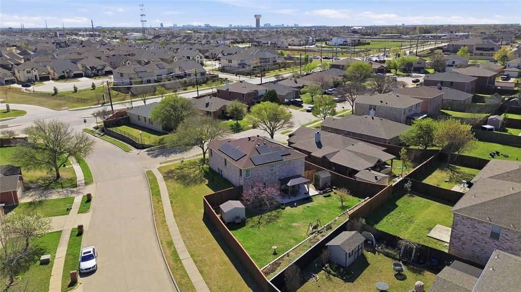 PANELS WILL BE PAID OFF AND TRANSFERRED TO THE NEW BUYER!!Welcome to this beautifully updated 4-bedroom, 3.5-bath home offering 3,306 sq ft of living space on a desirable corner lot in Kings Crossing. This two-story residence features 3 living areas and 2 dining areas, providing generous space for everyday living and entertaining. Recent major upgrades include a new Lifetime composition roof (2021), transferable solar panels (2022) that have significantly reduced energy costs, a fully replaced HVAC system (2023), a new water heater (2022), and professionally completed foundation repair with a transferable warranty (2023). The interior showcases waterproof laminate flooring throughout most of the home, Berber carpet in the master suite, and porcelain tile in the half bath and utility areas. The kitchen features granite countertops, a deep double sink with new disposal, and premium appliances including a Cafe stainless steel dishwasher, Whirlpool electric range and microwave, and a Wi-Fi-enabled Samsung refrigerator with built-in screen and ice maker. Upstairs, the hall bathroom was fully renovated in 2023 with a deep soaking tub, updated surround, and new fixtures. Anderson lifetime windows grace the upper level, complemented by newer windows on the main floor (2023). Ceiling fans and upgraded lighting have been added throughout. The exterior boasts an 8-foot board-on-board stained privacy fence with dual entry gates, a covered patio, Larson storm doors at both the front and rear entries, and a concrete retaining wall. The backyard includes mature fruit trees on this spacious corner lot. The home is pre-wired for surround sound in the upstairs family room. Solar panels are transferable to the new owner, offering immediate energy savings. A true move-in ready home with pride of ownership at every turn.Buyer Agent to Verify ALL dimension & measurements and square footage.