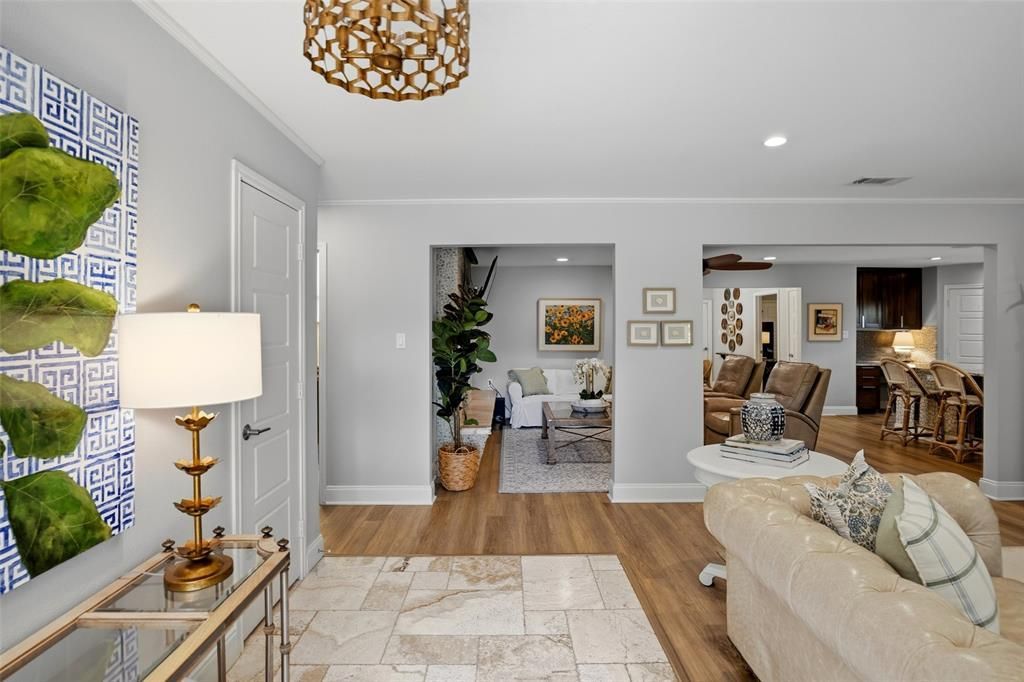 Charming and move-in ready, this 4-bedroom, 2-bath home in Ridgmar offers a versatile layout and thoughtful updates throughout, with the fourth bedroom currently being used as an office. The open floor plan features two spacious living areas and two dining areas, ideal for both everyday living and entertaining. The beautifully updated kitchen is a standout, equipped with professional-grade stainless steel appliances, including a 5-burner gas range, built-in full-size refrigerator and freezer, double ovens, a wine fridge, and a secondary prep sink, along with ample workspace and storage. Both bathrooms have been tastefully updated, and additional highlights include plantation shutters, a wood-burning fireplace, and an attached two-car side-entry garage. Step outside to a generous backyard with plenty of room to play, plus an open patio perfect for outdoor dining and gatherings. Ideally located just one block from Leonard Park, this home combines comfort, style, and convenience in a prime location.