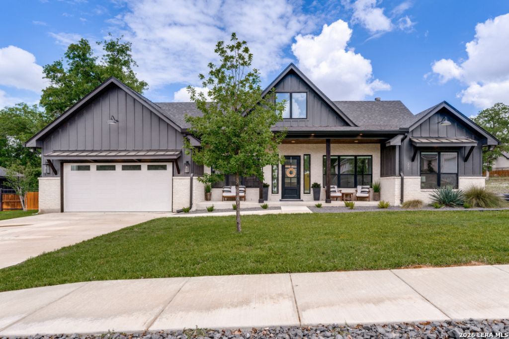 Step into your dream home in the gated community of Woodbridge Farms, where neighborhood amenities include, a splash pad, two playgrounds, a basketball court, event pavilion and sidewalks throughout -all within La Vernia ISD. This custom-built, one-story home offers a thoughtfully designed split floor plan perfect for both entertaining and everyday living. Luxury tile flooring flows seamlessly throughout the entire home, leading you into a spacious living area highlighted by vaulted ceilings, a striking accent wall, and a stunning floor-to-ceiling fireplace that serves as the heart of the home. The open-concept kitchen is designed to impress, featuring stainless steel appliances, a large modern sink, hand-selected tile, an oversized island perfect for gathering, and an expansive walk-in pantry with abundant storage for food and appliances. The private owners suite is a true retreat, complete with a massive walk-in closet and a spa-like en-suite bathroom showcasing custom tile work, double vanities, and a large walk-in shower. Two additional generously sized bedrooms each include their own walk-in closets, while an office with a closet offers flexibility as a fourth bedroom. Additional highlights include a spacious laundry room and a two-car garage with an insulated door and epoxy flooring-perfect for your organizational and storage needs. Energy-efficient spray foam insulation enhances comfort while helping reduce utility costs year-round. This home is loaded with upgrades, including automated blinds throughout, a whole-home water softener and charcoal filter, a reverse osmosis system in the kitchen. The backyard is thoughtfully designed with a newly seeded lawn, and dividing fence-ideal for gardening, projects, or pets. Finally, step outside to your private outdoor retreat featuring front and back sprinkler systems and an extended covered patio, perfect for entertaining or simply unwinding. Dont miss your chance to own this stunning move-in-ready property. Schedule a private tour today and see it for yourself!