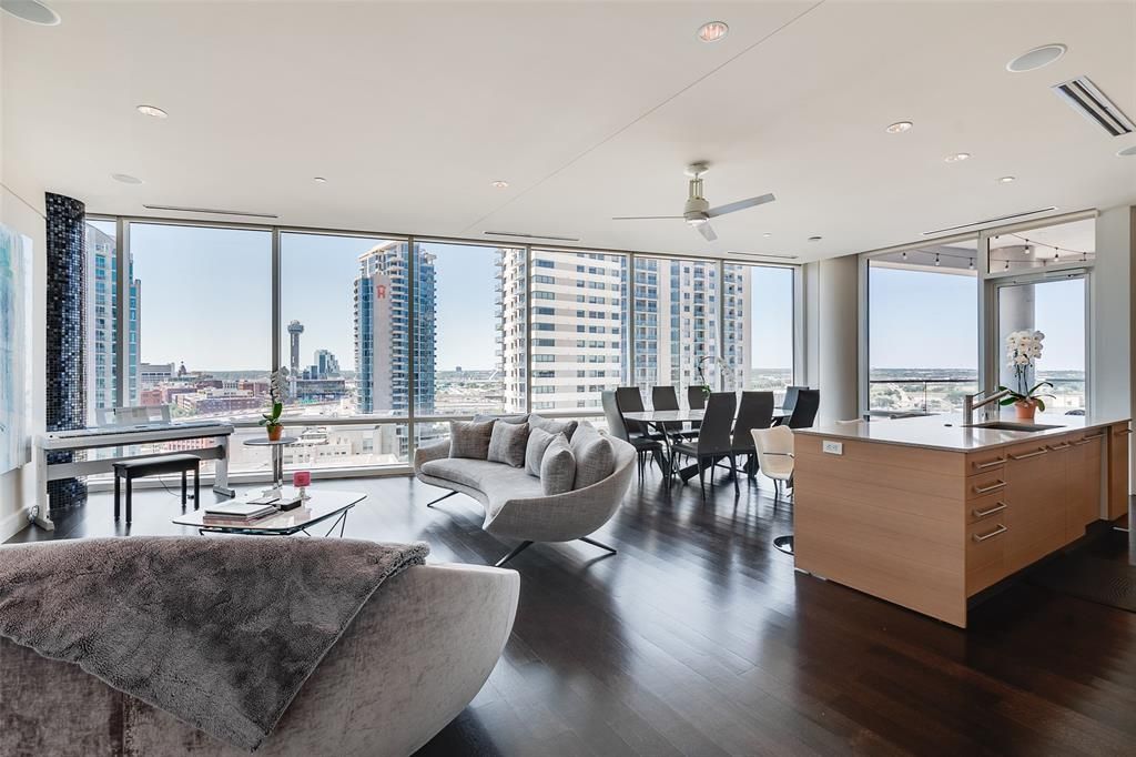 Experience elevated living in this exceptional high-rise penthouse-style residence at the iconic W Residences in Dallas. This sophisticated 2-bedroom, 2.5-bath luxury condo is perched on the 12th floor and showcases expansive corner-unit views, seamless open-concept living, and refined modern finishes throughout.Designed for both comfort and elegance, the thoughtfully split-bedroom layout offers ultimate privacy. The primary suite is a true retreat, featuring a generous walk-in closet, spa-inspired bath with dual vanities, soaking tub, and separate glass-enclosed shower all framed by breathtaking panoramic views of Downtown Dallas, Reunion Tower, and the Calatrava Bridge. The secondary bedroom includes its own walk-in closet and private en-suite bath, ideal for guests or a home office.The designer kitchen is a showpiece, complete with an oversized island, sleek custom cabinetry, and premium Miele appliances perfect for entertaining or everyday luxury living. Floor-to-ceiling windows with electric shades flood the space with natural light while offering effortless privacy.Residents enjoy exclusive access to world-class amenities including multiple resort-style pools, private cabanas, state-of-the-art fitness centers, a resident lounge, and full-service W Hotel offerings with in-residence dining. Complimentary valet, concierge services, and direct access to Victory Park's premier dining, nightlife, and the American Airlines Center complete the ultimate luxury leasing experience.