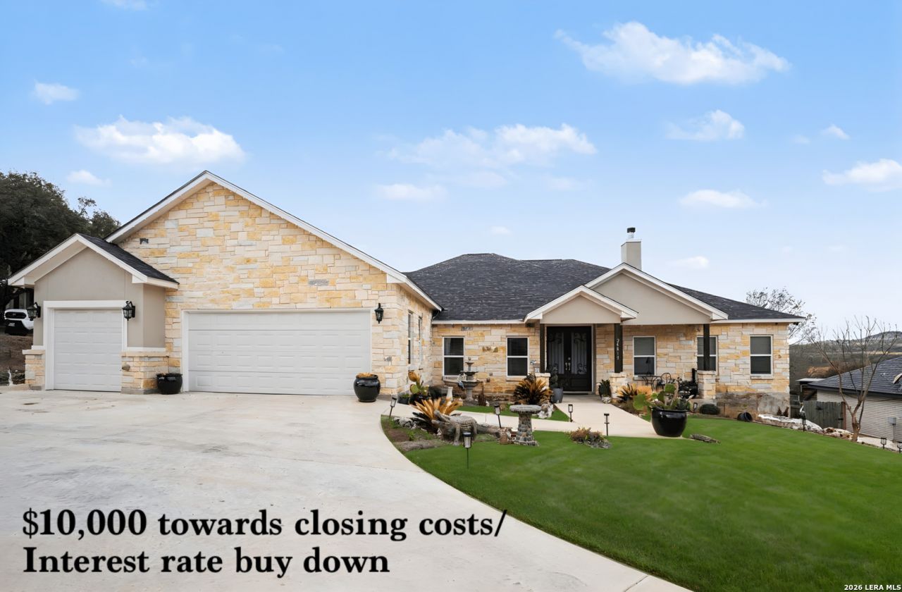 **Seller is offering 10,000 concession towards rate buy down/closing costs** Open House Saturday April 25th 12:00-2:30** Located on approximately a half-acre lot in the desirable Timberwood Park community, this custom-built 3-bedroom home with circular driveway offers space, quality construction, and exceptional entertainment features. Conveniently situated just off Blanco Road, the home provides easy access to the highway while maintaining a private, spacious setting. The property features four sides masonry construction and 100% tile flooring throughout with no carpet. Inside, youll find a functional layout with generously sized bedrooms, each offering two closets, and a huge walk-in pantry that complements the custom kitchen complete with a pot filler. All windows in home feature a tilt inward for easy cleaning. The oversized game room is perfect for entertaining and includes a $20,000 surround sound system along with a 120-inch screen and built-in projector for an incredible home theater experience. The living area features one of two wood-burning fireplaces, adding warmth and charm. The spacious primary suite offers a spa-like bathroom with a rainfall shower and jetted soaking tub. The garage features a 3 car tandem garage that will easily fit 4 vehicles. There are 3 bay doors, one of which is located on the back side of garage for easy access to backyard. Step outside to an extended covered patio designed for entertaining, featuring its own fireplace, TV, and surround sound. Additional highlights include a full security system with outdoor cameras, and an aerobic sprinkler system. This home combines custom design, modern entertainment, and comfortable living on a generous lot. HOA Amenities include a Junior Olympic Pool, Sports Court and Pavillion. Enjoy summer time fun with the family and go for a walk on the trails, playground or just enjoy the 30 Acre Private Park that includes a lake and 6 Hole Golf Course. Dont miss out, schedule a showing today!