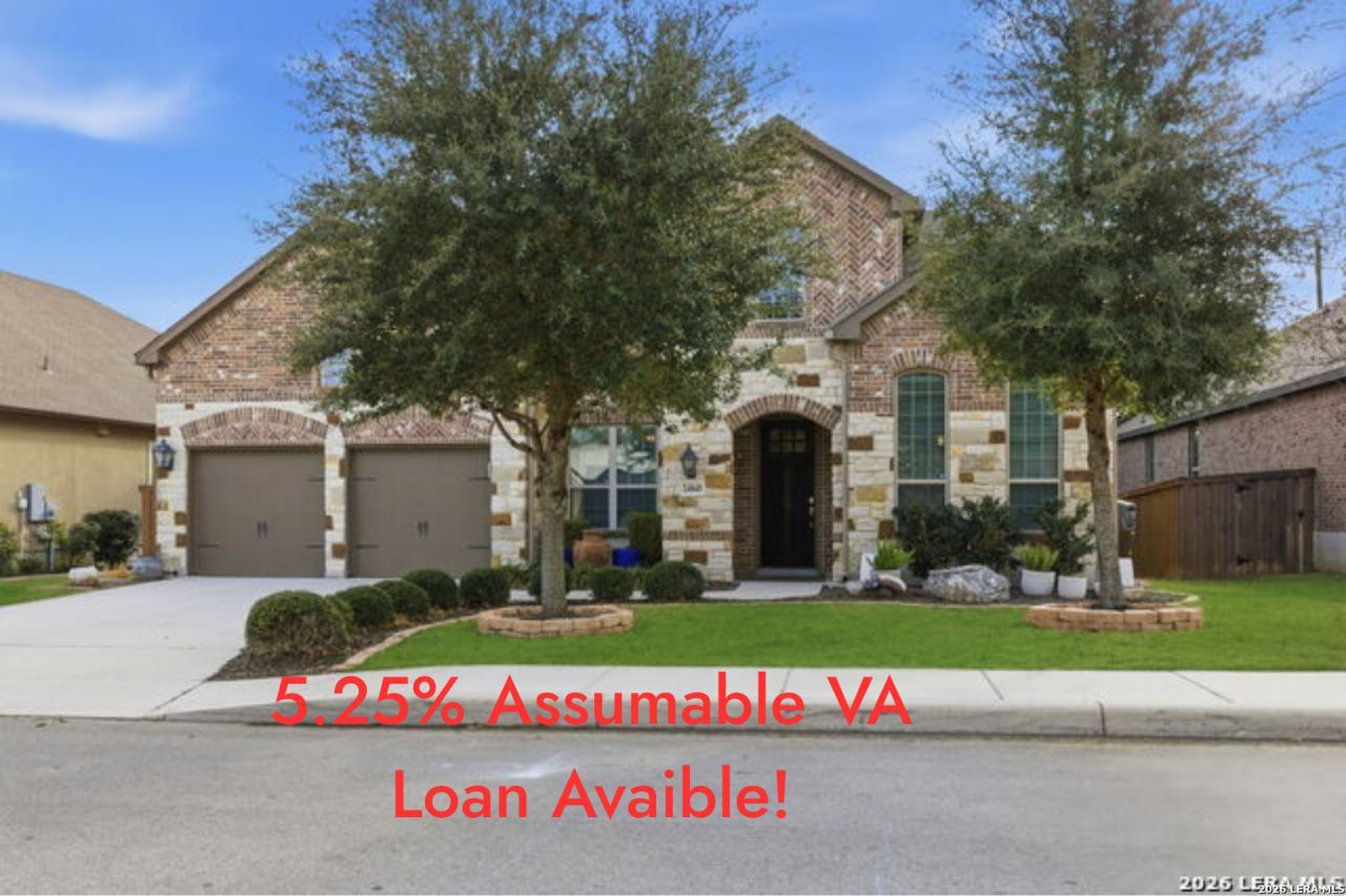5.25% Assumable VA Loan Avaible! Located in the gated community of Cibolo Canyons, this beautiful home sits on a large private lot backing to a serene nature preserve and greenbelt, offering privacy and peaceful views rarely found in the area. Inside, the home features tile and luxury vinyl plank flooring, solar panels, and an open-concept layout designed for both comfortable everyday living and effortless entertaining. The thoughtfully designed floor plan includes the primary suite, a secondary bedroom, and a dedicated home office on the main level, offering excellent functionality and flexibility. Upstairs, youll find two additional bedrooms and an oversized loft, perfect for a game room, media space, or additional family living area. The solar panel system adds energy efficiency and potential utility savings, while residents enjoy access to a well-appointed community amenity center. Conveniently located near shopping, dining, and major highways, this home offers the perfect balance of privacy, space, and modern living in one of San Antonios desirable communities.