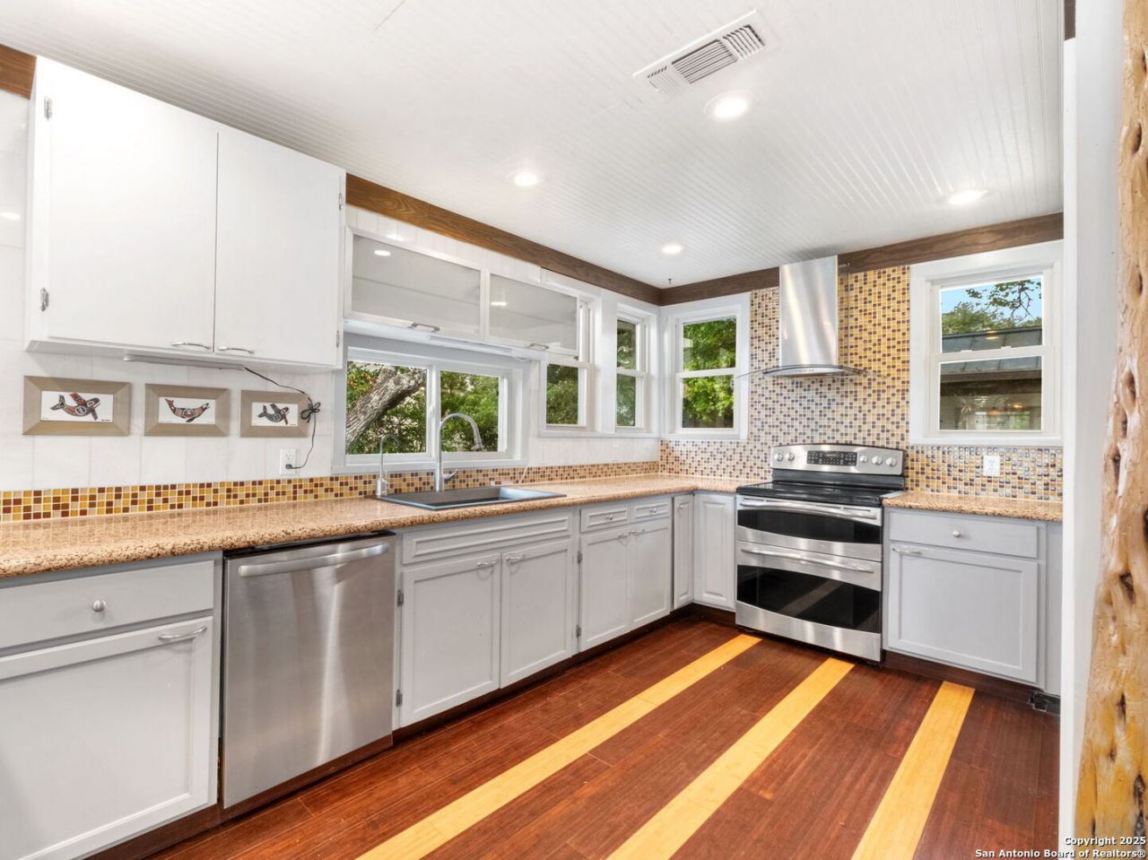 Now offering $10,000 concession toward upgrades. Tucked away on .92 acres of lush, botanical landscape, this distinctive property offers a sense of calm and connection to nature. Whether youre envisioning a multi-generational retreat or an inspiring space for entertaining, this dual-residence estate offers both flexibility and beauty. A charming wooden gate opens onto a raised deck that blends naturally into the surrounding greenery, guiding you to the spacious two-story main residence. Step into the main level, where sunlit spaces beautifully blend timeless elegance with natural charm. Here, rich wood accents and marble countertops define the kitchen, which opens to a spacious dining area and a cozy living room anchored by a stone fireplace. Just off the dining room, a small step down leads to a large second living area-warm, inviting, and full of character. Each of these rooms connects seamlessly to the outdoors, featuring large windows that frame scenic views and provide direct access to the surrounding deck-perfect for effortless indoor-outdoor living. On the lower level, youll find two generously sized bedrooms, including a serene primary suite with a private full bath. A second full bathroom-complete with laundry area-adds ease and functionality to this peaceful living space. Behind the main residence, the property opens up into a spacious backyard, offering ample room for gardening, play, or quiet reflection. A bamboo-lined roundabout drive leads to a thoughtfully designed single-story guest house with its own private entrance. High ceilings and tall windows fill the space with light and showcase beautiful views of the natural surroundings. The guest house offers a full kitchen, open dining area, comfortable living room, one bedroom, and one and a half baths, washer and dryer hookups included. This versatile space is perfect for in-laws, extended family, guests, a private home office with meeting space, an art studio, or a wellness retreat-adaptable to whatever lifestyle you envision. Complete with unique character and tranquil outdoor spaces, this property is more than a home-its a lifestyle.