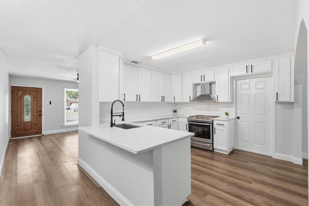 Conveniently located between Dallas and Arlington, this inviting 4 bedroom 2 bathroom home has been extensively updated inside and out, delivering both modern style and exceptional structural integrity ensuring a low maintenance home for years to come. Recent major improvements include electrical panel, outlets and switches throughout the home, hot water heater, full sewer line replacement, windows, HVAC servicing, foundation repairs with warranty, luxury vinyl plank flooring, baseboards, interior and exterior paint, plumbing and electrical fixtures, and more! The interior of the home features 1854 square feet of functional living space consisting of 2 living spaces, 4 spacious bedrooms, 2 full bathrooms, and a full dining area. The gourmet kitchen boasts all white cabinetry with updated countertops and gas range. Step outside and you'll be greeted by your covered patio space and large private backyard with storage shed included. 306 Baron Pl not only offers a stunning remodel, but the numerous structural updates ensure lasting peace of mind for years to come.
