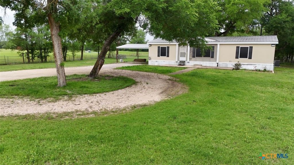 Well-maintained manufactured home situated on a spacious, tree-covered lot offering privacy and flexibility. The property features mature hardwood trees, a fenced yard, and a large gravel driveway with ample parking, plus a covered carport. Interior offers an open-concept floor plan with wood-look flooring throughout the main living areas. Kitchen includes abundant cabinetry, wraparound counter space, and a center island overlooking the living and dining areas. Exterior highlights include a shaded concrete patio, fire pit area, and expansive yard with room for recreation, pets, or future improvements. Convenient access to nearby roadways while maintaining a quiet, country setting. Ideal for owner-occupant or investment use. This could easily be smaill storage facility, lay down yard or commercial yard