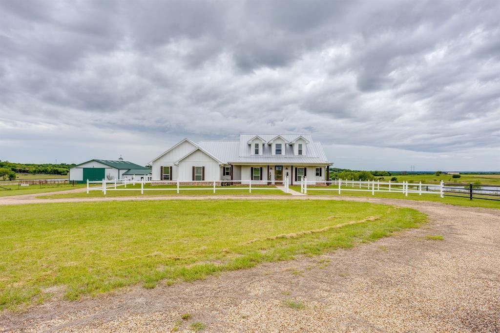 Set on 30+ breathtaking ag exempt acres, this picturesque ranchette with 2 separate dwellings and a mother-in-law suite is thoughtfully designed for refined country living. The stunning main farmhouse with charming, covered porches offers 4 bedrooms, 4 bathrooms, 3 car garage, 2 private offices, and a media-game room… curated details throughout include: painted shiplap, a brick kitchen backsplash, stainless-steel countertops, lovely stained-glass accent doors, butler's pantry, and luxury outdoor kitchen. The attached mother-in-law suite with garage and private exterior access has its own kitchen, living area, bathroom, and walk-in closet - ideal for multigenerational living or guests. The land is cross fenced into 4 pastures and features a 5 acre stocked pond with large mouth bass a floating dock, providing beauty and functionality. A large shop-barn with double sided oversized bay doors offers exceptional versatility that features an office space, loft storage, as well as a fully equipped barn apartment with a full kitchen, living room, bathroom, and utility room - perfect for ranch help, guests, or income potential. Behind the apartment is a conditioned space equipped with a pet washing station with a floor drain, doggy door, plenty of space to add kennels for keeping pets for your own use or for grooming or boarding. RV hookup on site as well. This rare turnkey ranchette with privacy, flexibility, and elevated amenities offers exceptional rural living. SEE LINK FOR PROPERTY WEBSITE WITH WALKTHROUGH VIDEO AND ADDITIONAL PICTURES. Will subdivide to houses and 10 + acres or just 19 + acres next door.