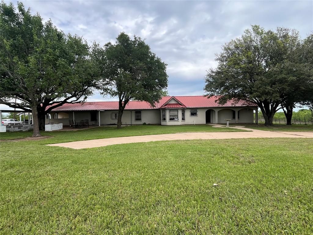 Country living at its best! This 3-bedroom 2-bathroom home offers 2609 square feet of living space. The home features a metal roof, dryvit exterior, and a slab foundation. It has an attached 2-car carport and a detached 2-car carport providing convenient covered parking and easy access to the home. Nice metal shop and covered parking area for equipment. The land has a nice mixture of open to woods, Christmas creek meanders through the property, multiple stock tanks for the wildlife and livestock, ideal for anyone looking for a working ranch, weekend getaway, or full-time country residence. Large live oak trees surround the home creating a peaceful setting, while the long driveway leads you into your own private retreat!