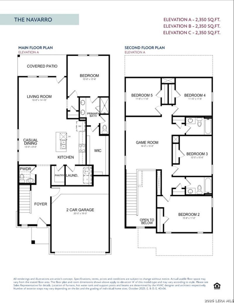 **READY THIS SUMMER - ALL APPLIANCES/GARAGE DOOR OPENER INCLUDED** Experience the ultimate in spacious family living with the Navarro, an expansive 2,350-square-foot floor plan spanning two beautifully designed levels. This impressive home features five versatile bedrooms and three and a half bathrooms, providing ample space for everyone in the household. The main floor boasts a grand open-concept layout, where a chef-inspired kitchen with a walk-in pantry overlooks the casual dining area and a massive living room. Tucked away for maximum privacy on the first floor, the primary suite features a spa-like bath and an oversized walk-in closet. Upstairs, youll find a massive game room that serves as a second living area, surrounded by four additional bedrooms and two full baths. Outdoor entertaining is a breeze on the oversized covered patio, perfectly positioned off the main living area. Complete with a two-car garage and a dedicated laundry room that includes a washer and dryer, the Navarro is the gold standard for modern, large-scale living.