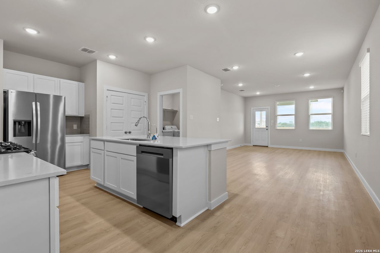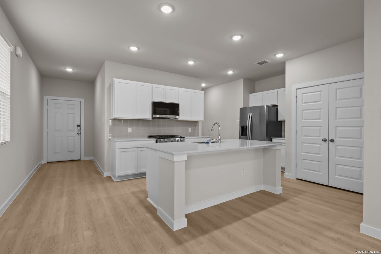 Welcome to the Isabella at Mesa Vista, where elegance meets versatility in a single-story floor plan. This home embraces the open-concept lifestyle, with its seamlessly connected great room, dining area, and kitchen-a layout perfect for everything from entertaining to game night. The owners suite features a private bathroom and a large walk-in closet, and the remaining three bedrooms share a bath with dual vanities. Additional home highlights and upgrades: 36" white kitchen cabinets and quartz countertops Luxury wood-look vinyl plank flooring in common areas Stainless-steel appliances Additional recessed lighting throughout home Cultured marble countertops and modern rectangular sinks in bathrooms Landscape package with sprinkler system Covered patio Exceptional included features, such as our Century Home Connect smart home package and more!