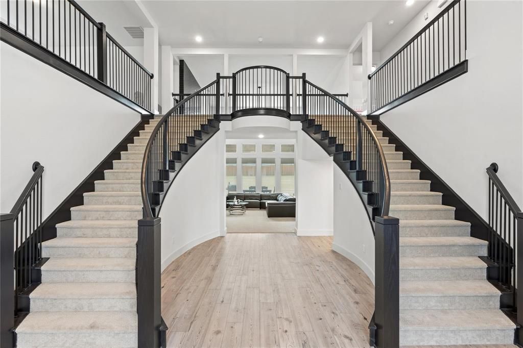 Discover the epitome of luxury living in this exceptional 2023 First Texas Home, offering 4,734 sq ft of thoughtfully designed space and a grand double staircase that creates an unforgettable first impression. Designed for both elegance and functionality, this 5-bedroom, 3.5-bath home showcases a seamless open-concept layout filled with natural light and refined finishes throughout.The expansive living area is anchored by a striking stone fireplace, creating a warm yet sophisticated gathering space. At the heart of the home, the chef’s kitchen impresses with sleek marble countertops, abundant cabinetry, and a generous island—perfect for everyday living and elevated entertaining.Designed with lifestyle in mind, the media room features a built-in bar, ideal for hosting movie nights or entertaining guests in style. The primary suite offers a private retreat, complete with a spa-inspired bath featuring an oversized freestanding soaking tub, a custom walk-in shower, and a spacious layout that exudes comfort and luxury.Step outside to a large, covered patio overlooking a generously sized backyard, providing the perfect setting for outdoor dining, relaxation, or future customization. Additional highlights include well-appointed secondary bedrooms, flexible living spaces, and modern design elements that enhance both form and function.Situated in a peaceful, established community with convenient access to major highways, shopping, and dining, this home offers the perfect balance of tranquility and accessibility.